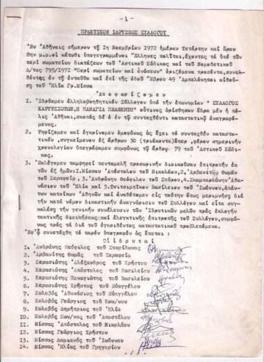 Ο σύλλογος ανέπτυξε σημαντική δραστηριότητα και υπήρξε ιδιαίτερα μαζικός. Ενδεικτικά αναφέρουμε οτι στις αρχαιρεσίες για την εκλογή Διοικητικού Συμβουλίου στις 29-2-1976 ψήφισαν 115 μέλη. Η Εφορευτική Επιτροπή (Βάϊος Τσιλίκας, Ηλίας Τσιλίκας και Κώστας Παϊσης) ανέλαβε τη διεξαγωγή των εκλογών και εκλέχτηκαν για το Διοικητικό Συμβούλιο οι: Ηλίας Χαρ. Ντόβολος, Θωμάς Αρβανίτης, Κλεομένης Κερασιώτης, Βασίλειος Τσιτσιμπίκος, Παύλος Κολοβός, Απόστολος Παπαποστόλου και Δαμιανός Μίσσας .Αναπληρωματικά μέλη ΔΣ : Χρήστος Κερασιώτης, Απόστολος Παϊσης, Ιωάννης Λιάκος. Για την Εξελεγκτική Επιτροπή : Θεόφιλος Ανδρώνης, Απόστολος Θεοδωρόπουλος, Γεώργιος Παπαδόπουλος.
